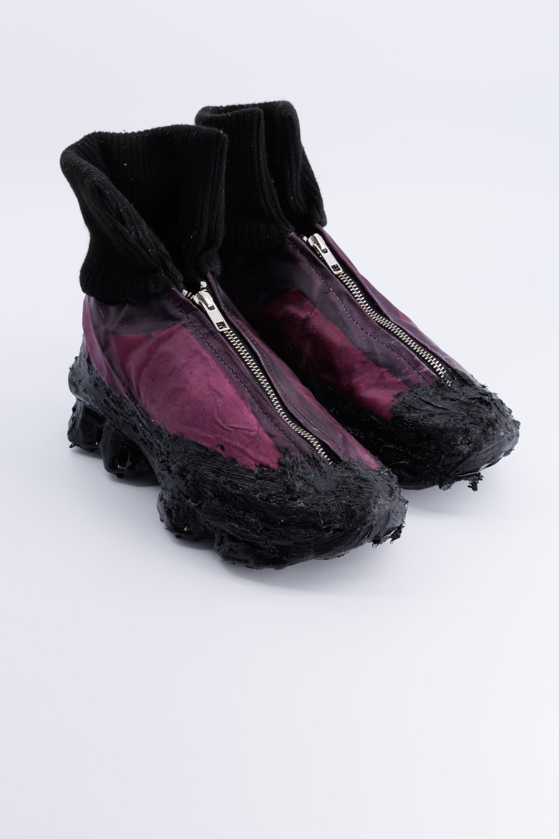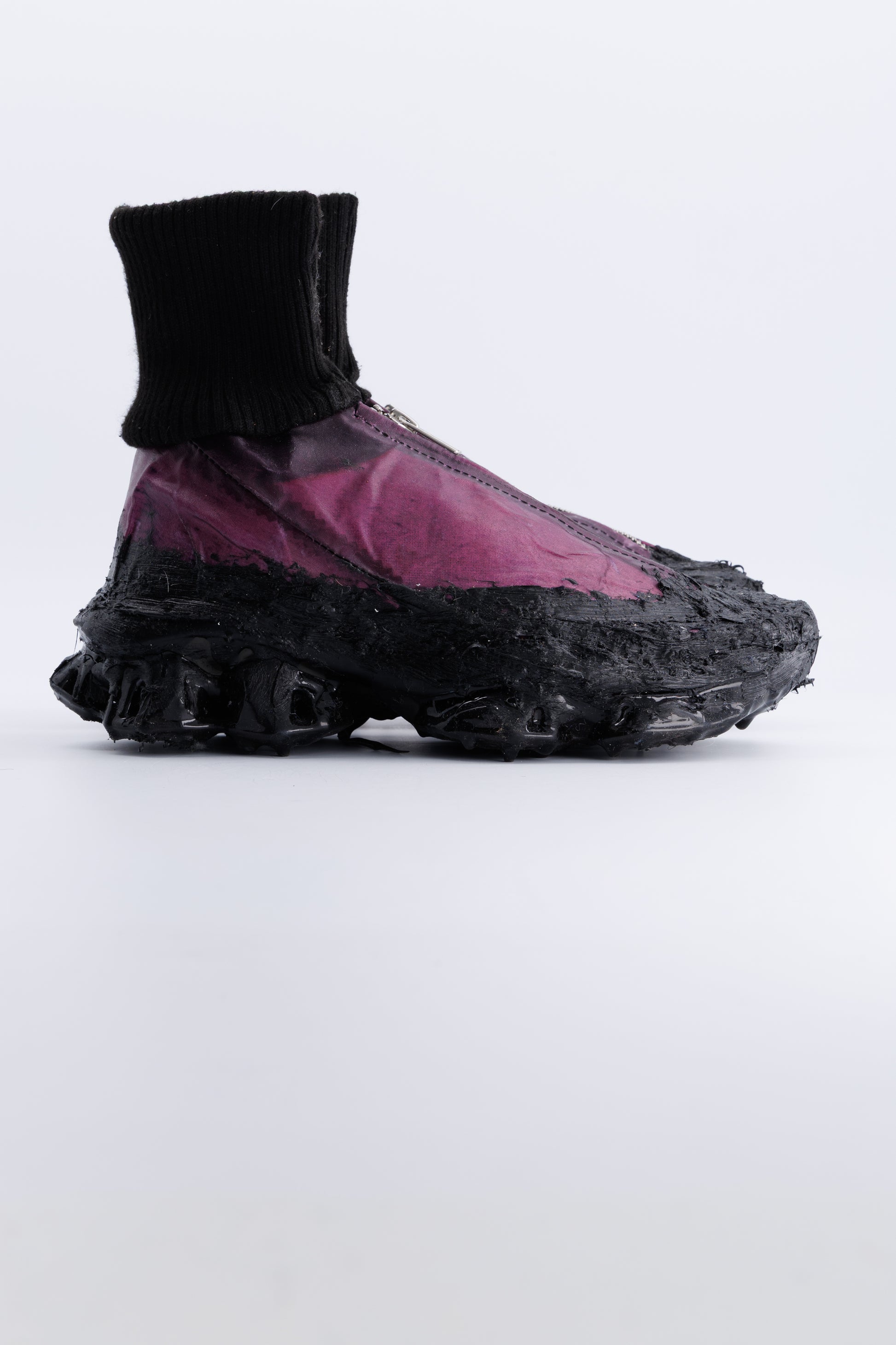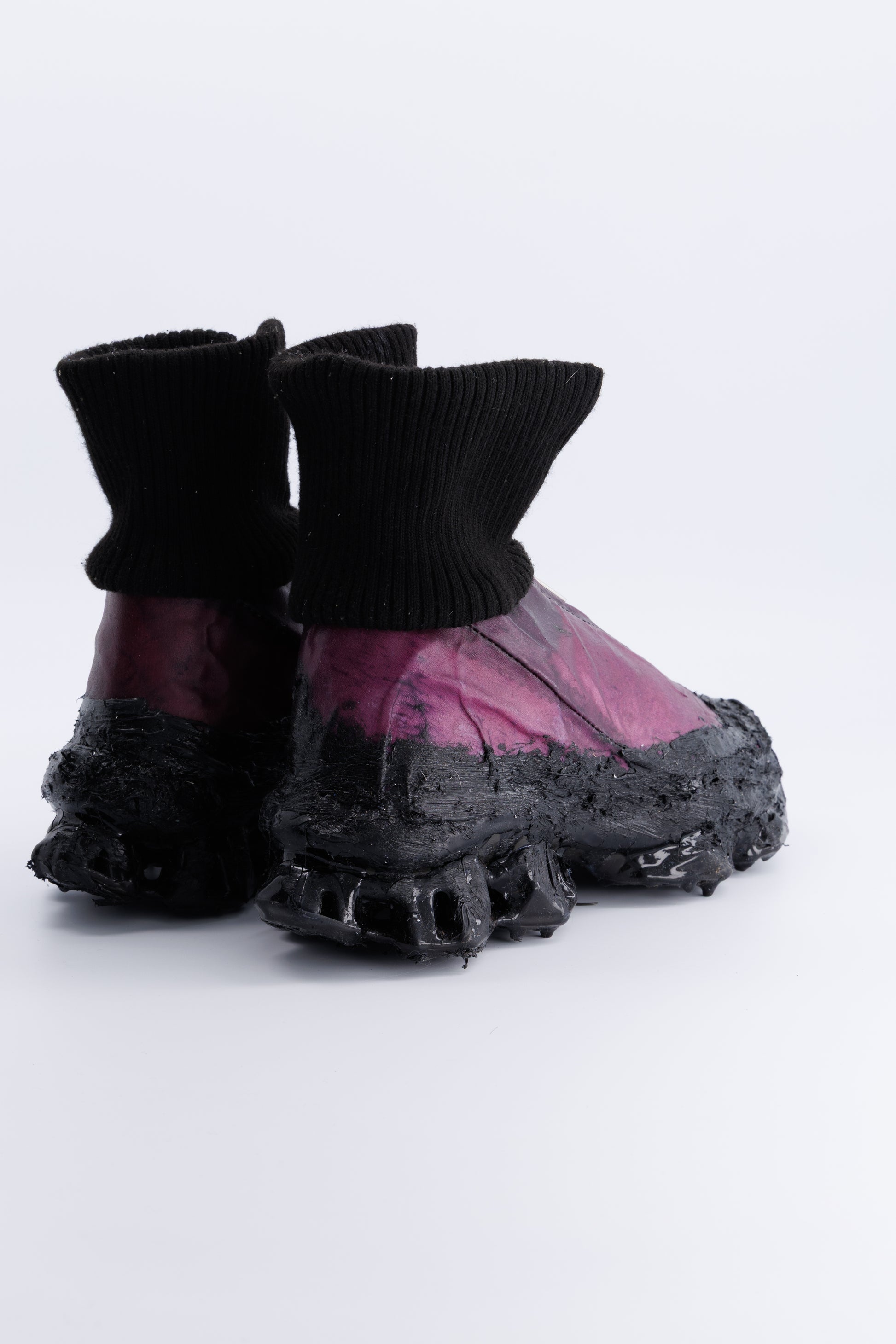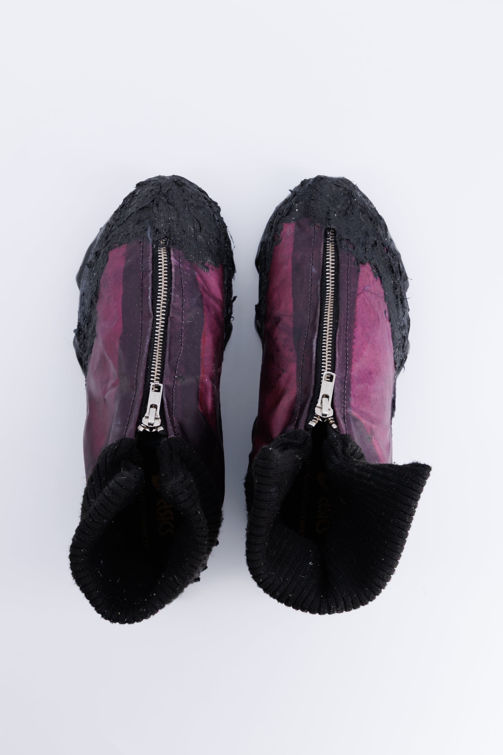 A SHATTERED DESTRUCTION OF ASICS WITHIN A BOOTS SHAPE THAT HAS BEEN HANMADE REWORKED .